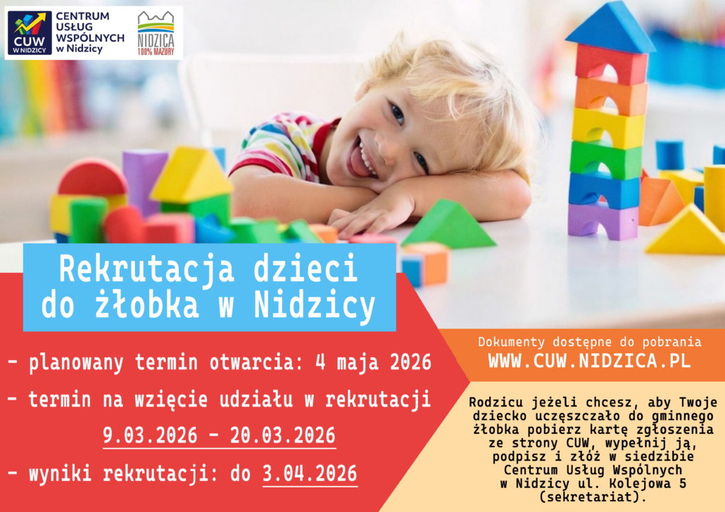Karty zgłoszenia dostępne w zakładce Poradnik interesanta/Żłobek w Nidzicy (przejdź)